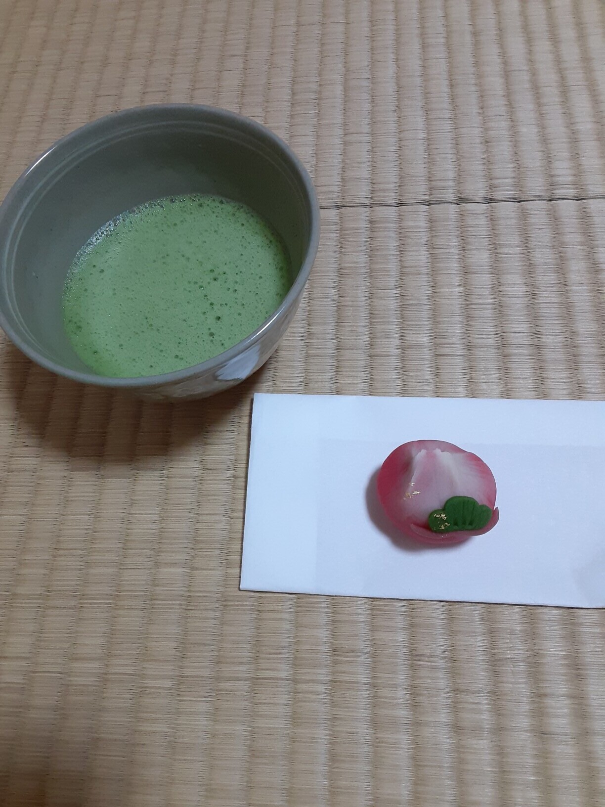 初稽古2026年01月11日 22:231月10日・11日は今年初めてのお稽古でした。とても寒い3連休でしたが、エアコンに頼りながらほっこりした時間でした。今日の主菓子は高山堂の「栄松」中はこしあんで美味しかったです。友達とランチお稽古