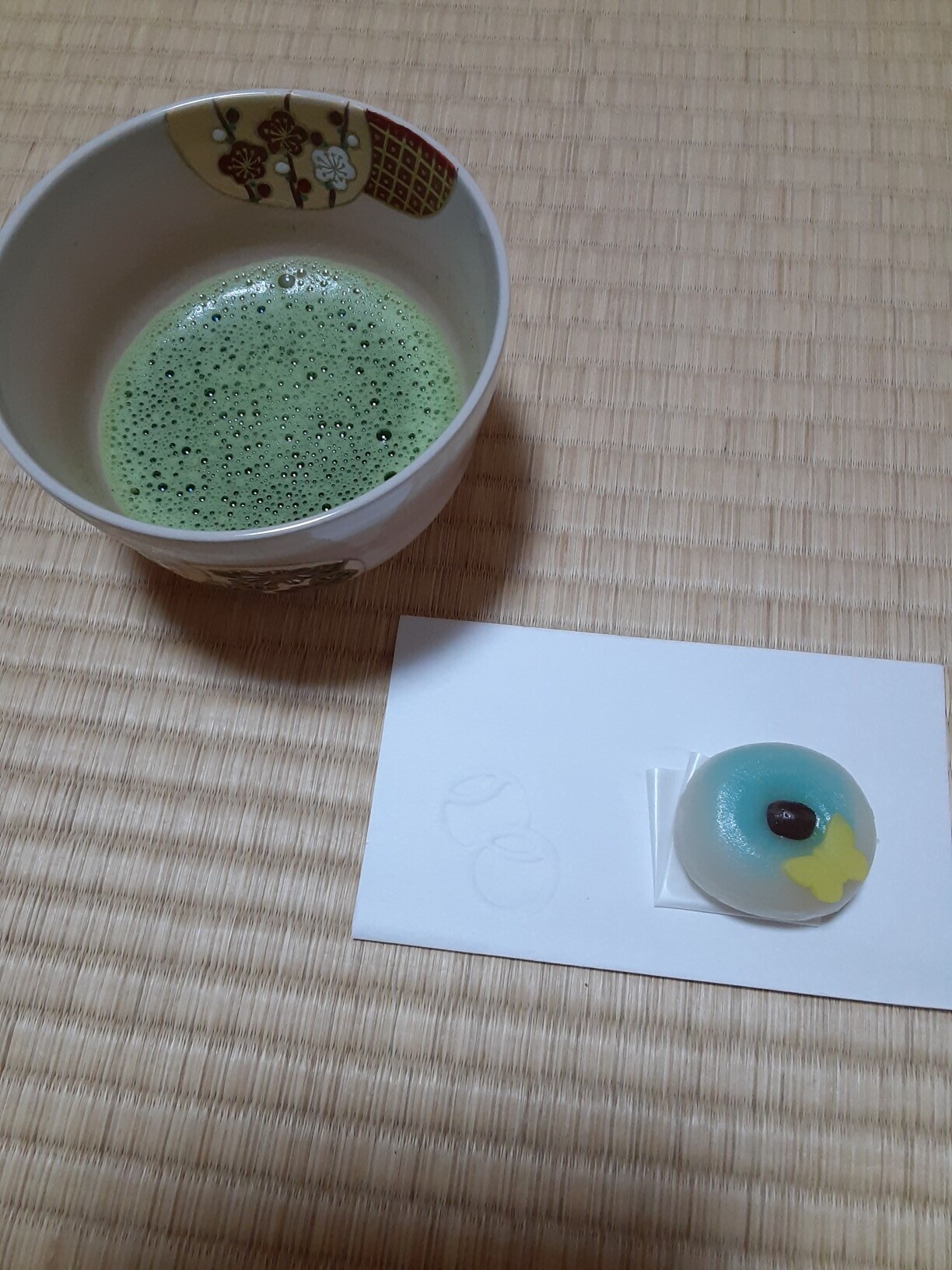 お稽古2026年04月12日 22:07日中は初夏のような汗ばむ日でしたが、久しぶりにお稽古をさせていただきました。透木釜を使ってのお稽古。炭手前や薄茶、割り稽古をしました。主菓子は高山堂の「水温む」白あんを外郎で包んでる和菓子。抹茶でほっこりできました。源氏巻炉最後のお稽古